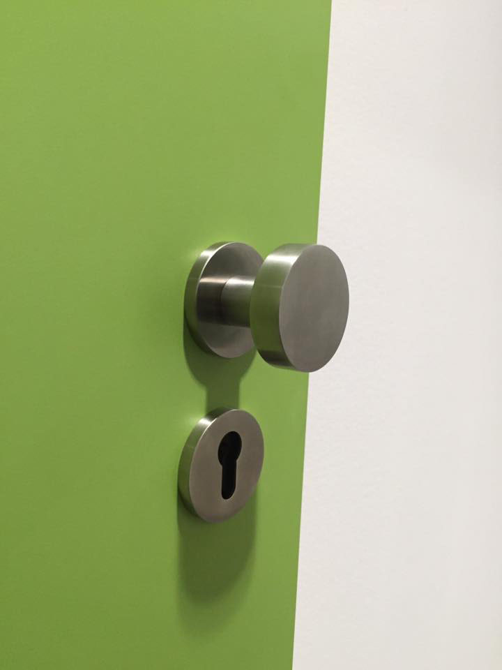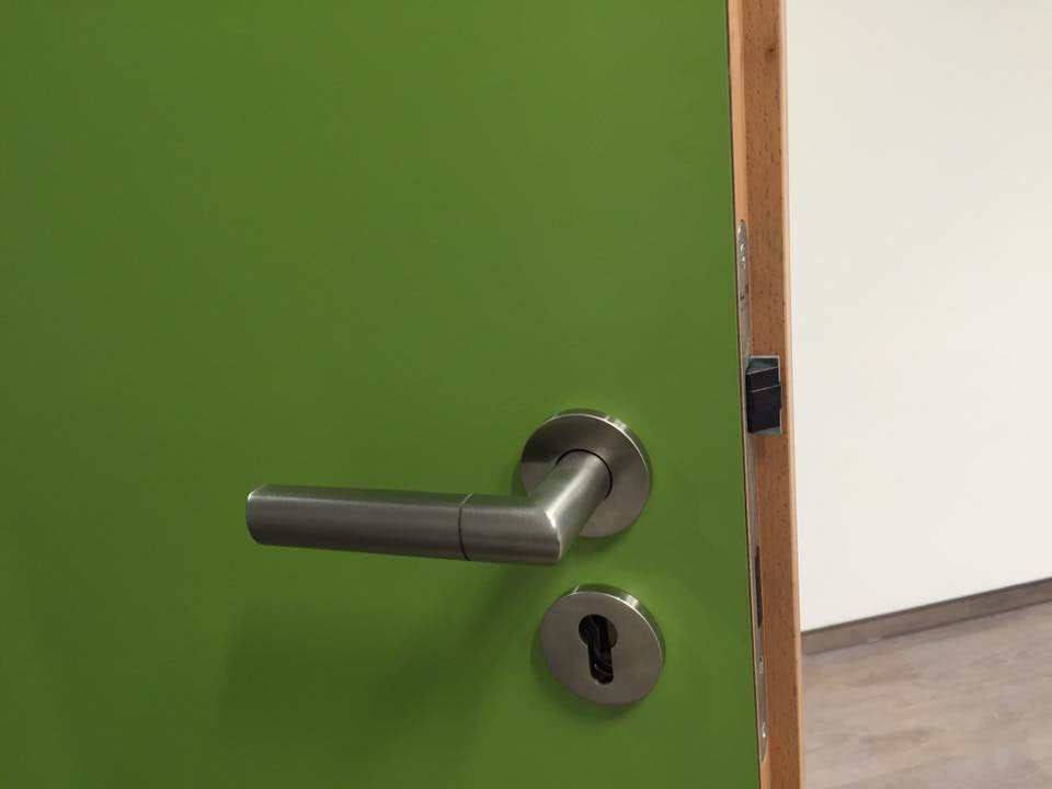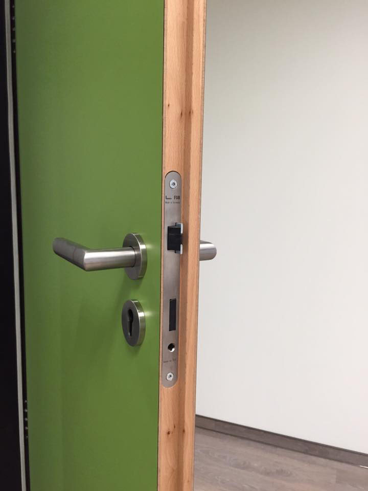 HPL-Beschichtung 0,8mm von Resopal Objektbeschlag, Edelstahl FSB Modell 1078Stahlzargen mit VX-Bänder der Marke SIMONSWERK